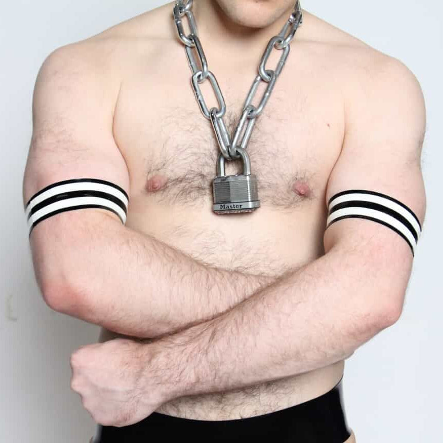 These bicep bands (Two Pack) match perfectly with our White Wideband Latex Jock.